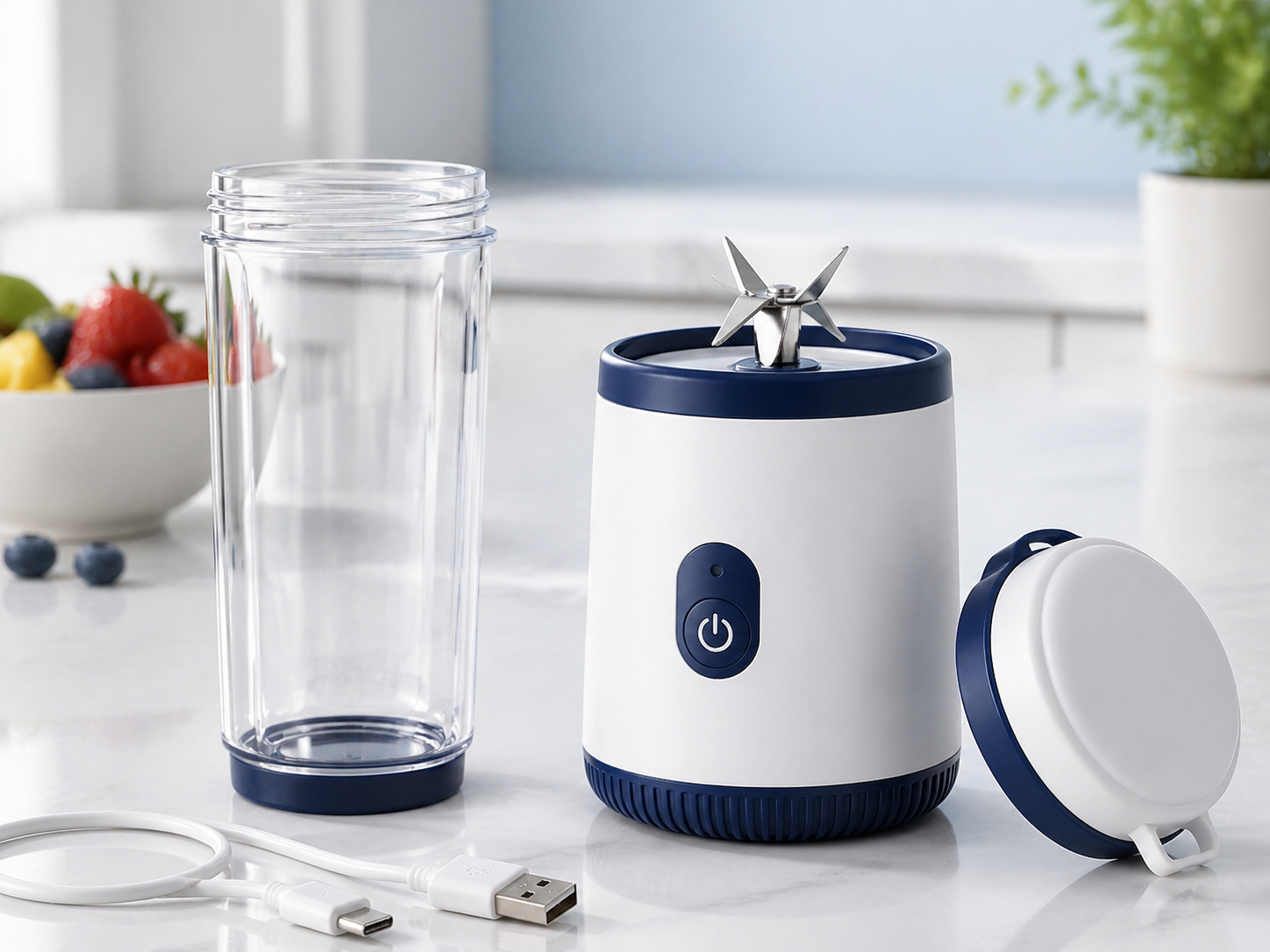 Portable blender with clean charging and detachable cup design, built for product-card and detail-page testing.
